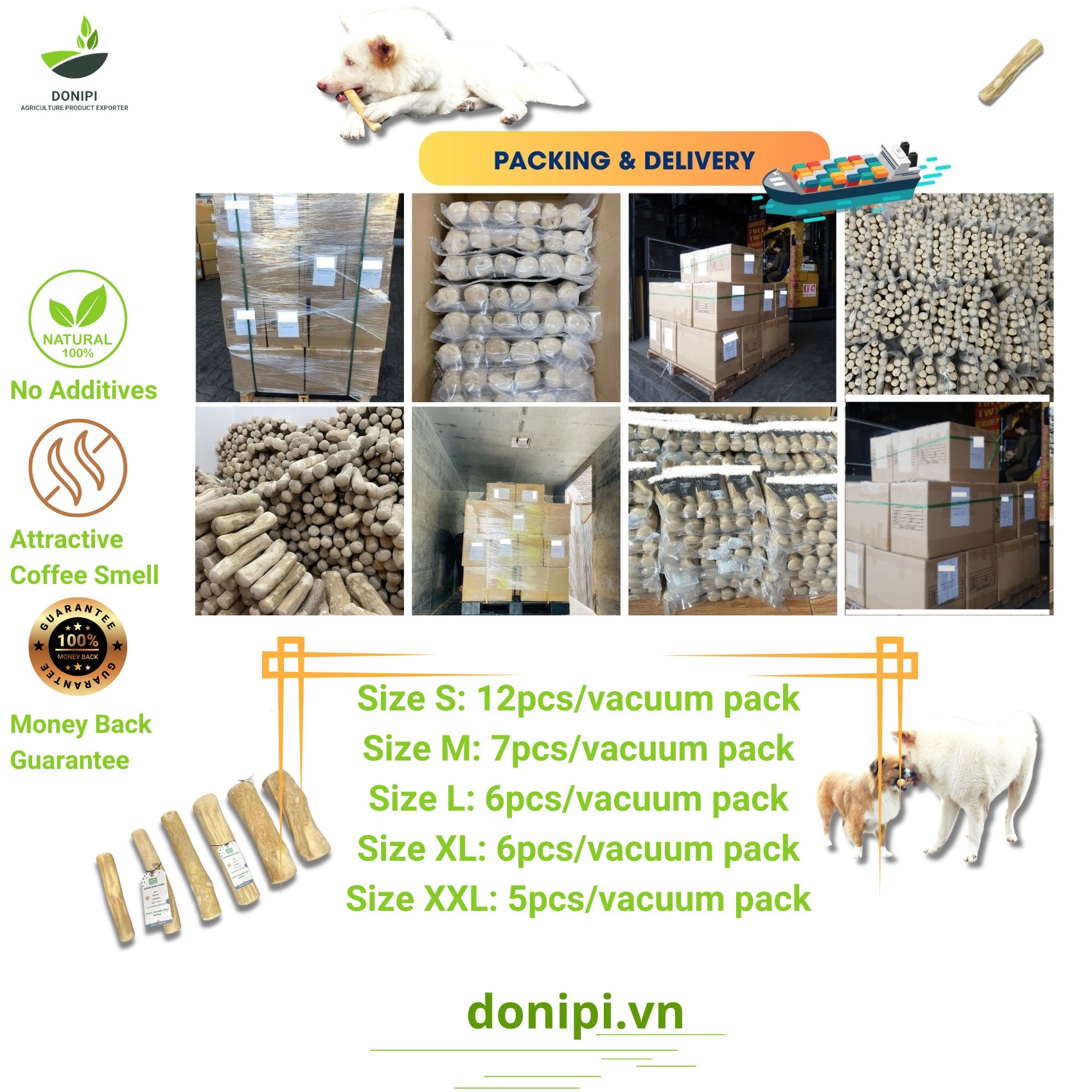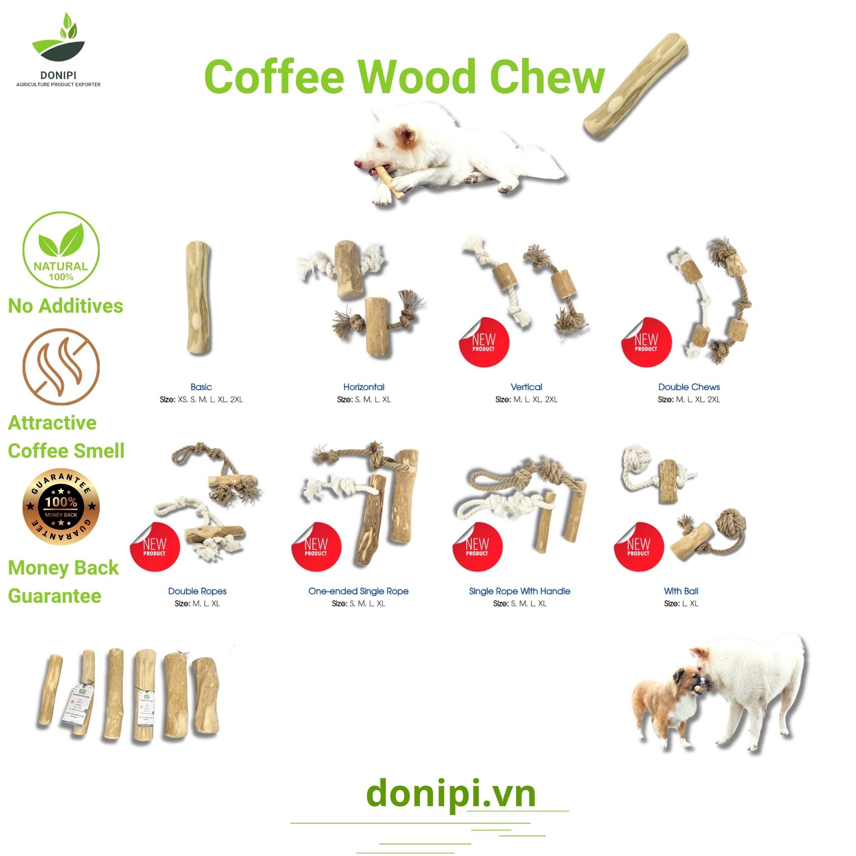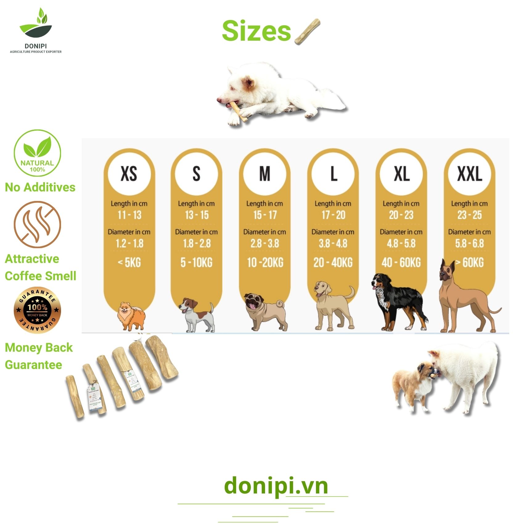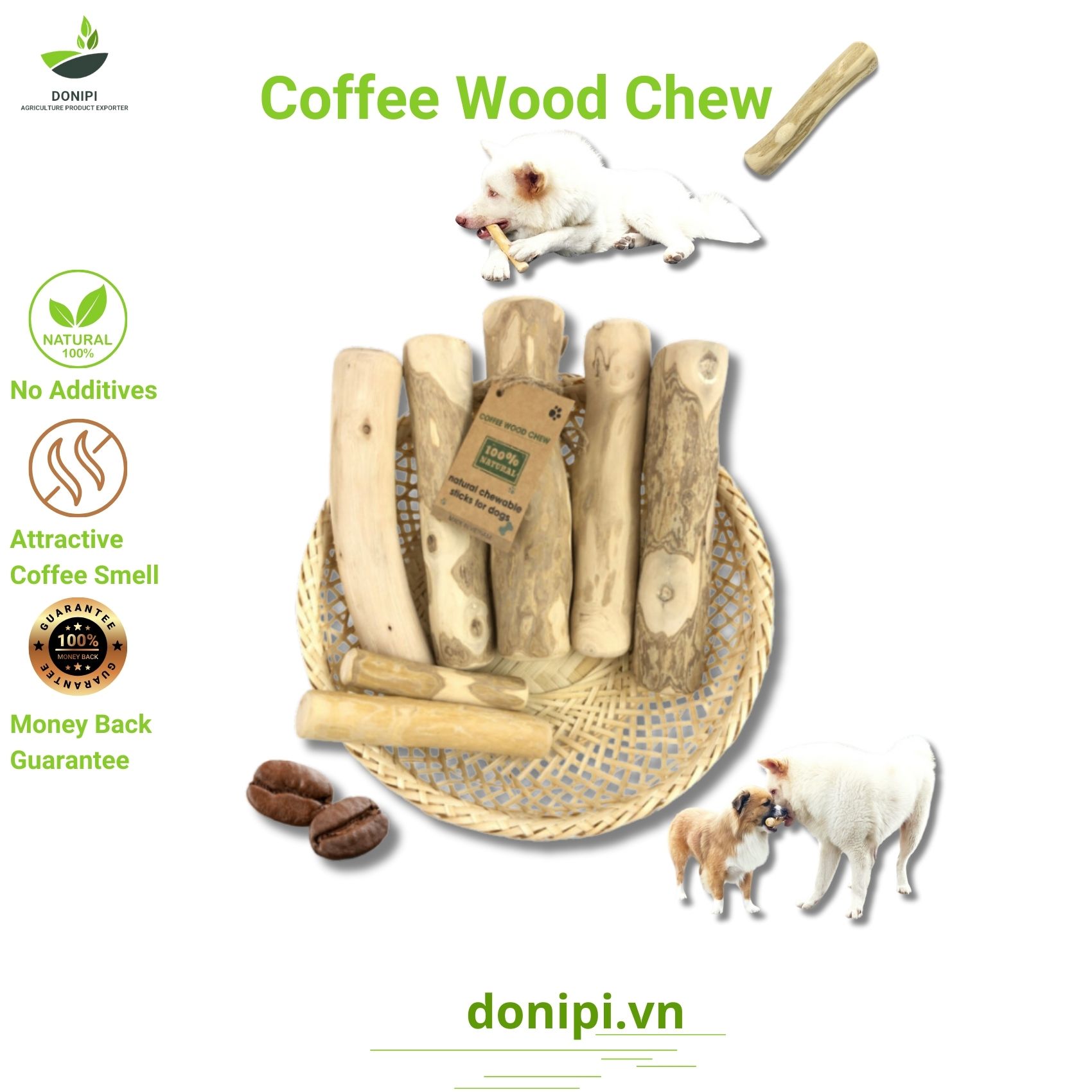Exported to the USA, Europe, and beyond, our Coffee Wood Chew Stick has become a global favorite among environmentally conscious pet owners. The sturdy wooden sticks provide a satisfying chew while promoting dental health. Embrace the ethos of sustainability and pamper your pup with the rich, aromatic essence of coffee tree wood. Choose Coffee Wood Chew – where every chew counts towards a greener planet and a wagging tail of happiness!