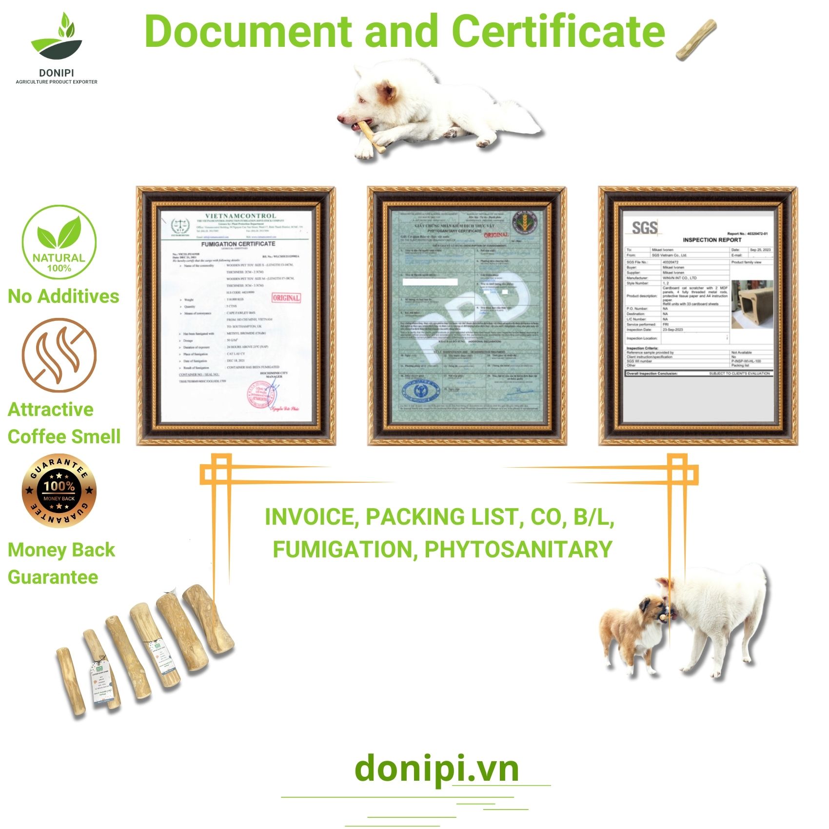 Coffee Wood Chew Certificate and Document